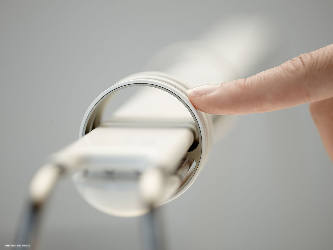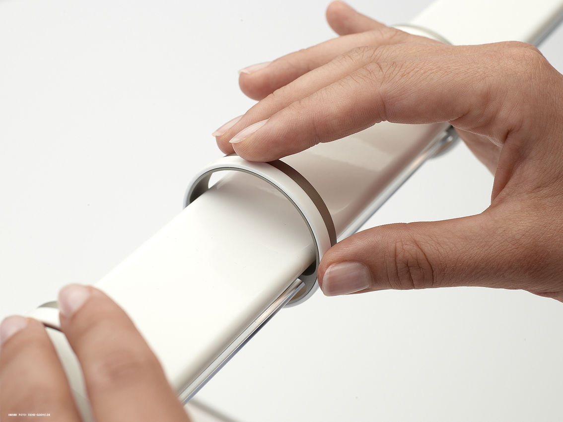 Auf Basis einer technologischen und patentierten Erfindung im LED Technologiebereich entstand die interaktive Leuchte RIMA, die die Metapher eines sich öffnenden Vorhangs aufgreift. Form und Funktion erinnern bewusst an die klassische Leuchtstoffröhre. Die Lichtführung lässt sich per Handbewegung und zusätzlich per App intuitiv steuern.