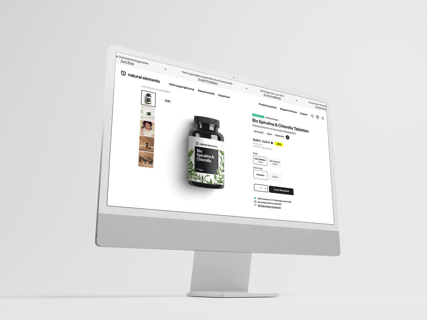 Für den Wechsel von Salesforce zu Shopify wurde der Webshop von natural elements (Untermarke von Natsana) neu strukturiert. Ziel war eine verbesserte User Experience, einfache Pflege und ein klarer Markenauftritt. Zusätzlich entstand ein skalierbares Designsystem, das zukünftiges Wachstum unterstützt und konsistente Gestaltung ermöglicht.