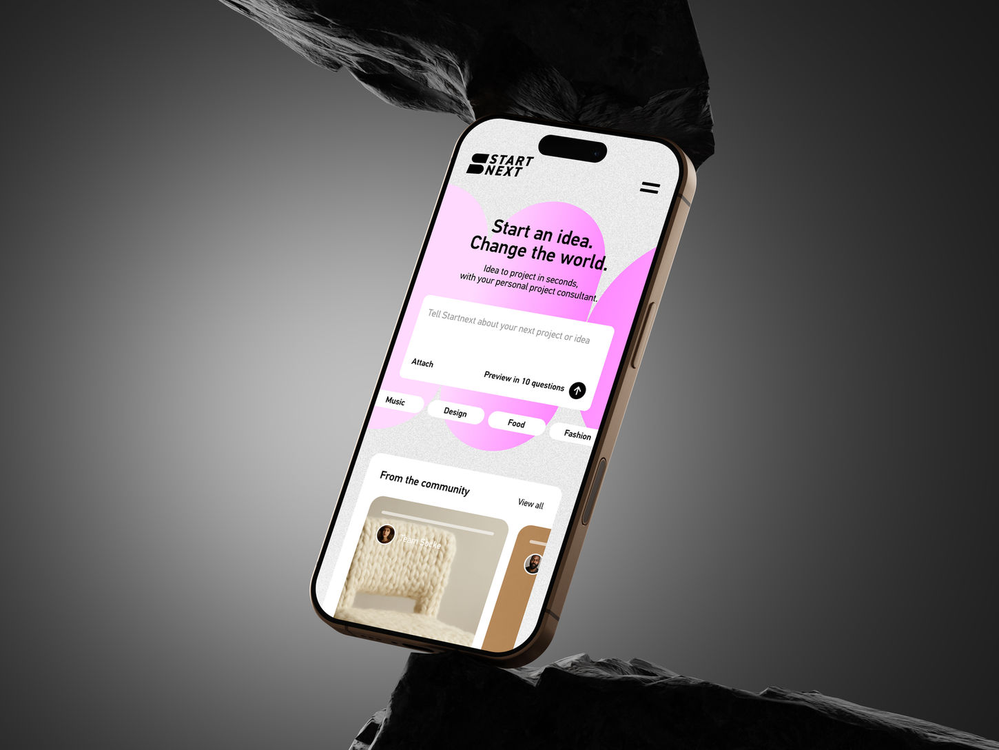Für STARTNEXT wurde eine moderne Markenidentität entwickelt, die die Transformation zu einer KI-basierten Plattform unterstützt. Eine junge, aktivierende Gestaltung erleichtert die Projekterstellung direkt auf der Website. Ergänzend entstand ein Designsystem, das langfristige Skalierbarkeit und ein konsistentes Nutzererlebnis sicherstellt.